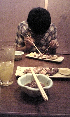 丁度焼き鳥を突っついてる場面ですかね、なんか知りませんが
