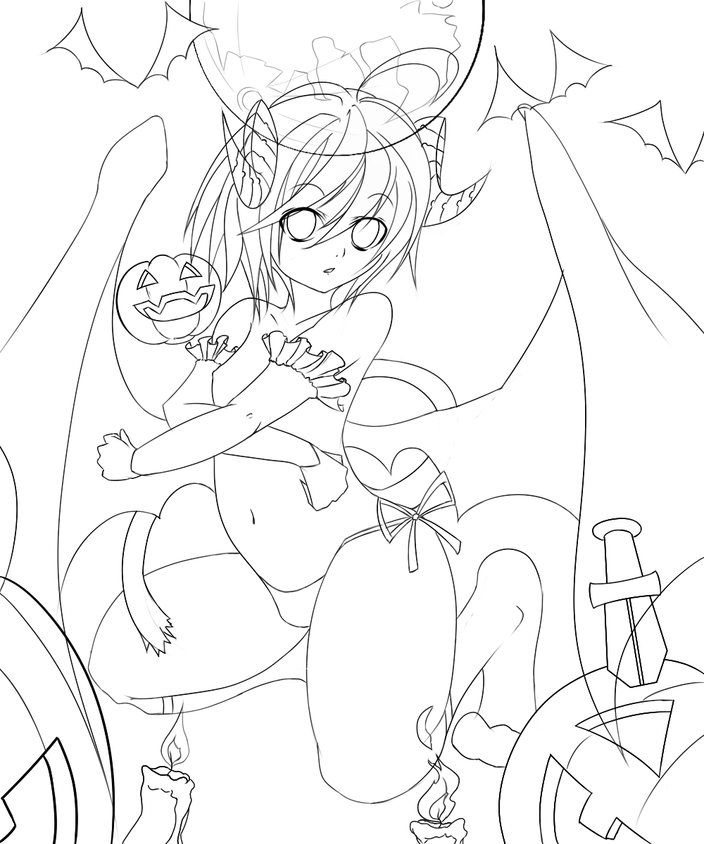 左は「ハロウィンで何か描いて~」との事で大分前に当たりだけ取ってた落書きを流用して悪魔っぽい娘を自分が描ける範囲のハロウィン要素を詰め込んだ一枚です。